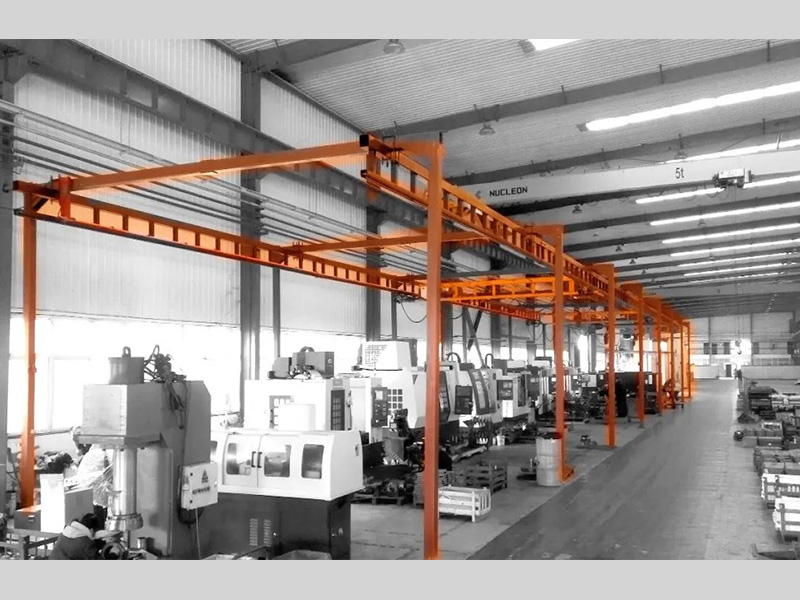 刚性轨道双梁征途国际采用轻量化、模块化和定制化设计,起升机构采用性能优越、技术先进的NL型环链电动葫芦,大、小车运行机构根据起重量情况设置为人力驱动或三合一驱动装置驱动。征途国际大、小车轨道采用刚性或柔性轨道,根据场地实际情况可悬吊在空中或自立式的钢结构立柱上。