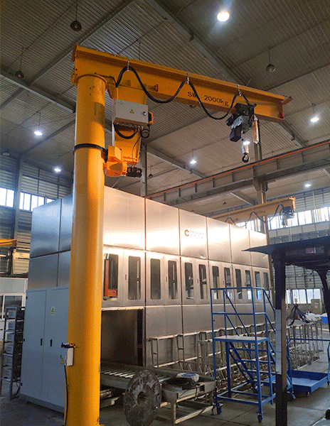 Fixed pillar jib crane is the Nucleon-developed jib product with new Chinese low-headroom electric hoist or chain electric hoist and servo electric hoist as hoisting mechanism, which has the advantages of superior performance, safety and reliability,