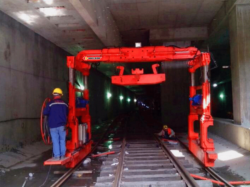 (3)根据需求铺轨门式征途国际要求具备自动变跨、变高功能;满足国内目前各类地铁隧道轨道工程施工作业工况需求,铺轨吊可通过站台、屏蔽门、小曲线弯道、联络通道,可不解体在隧道内整体运输转场。